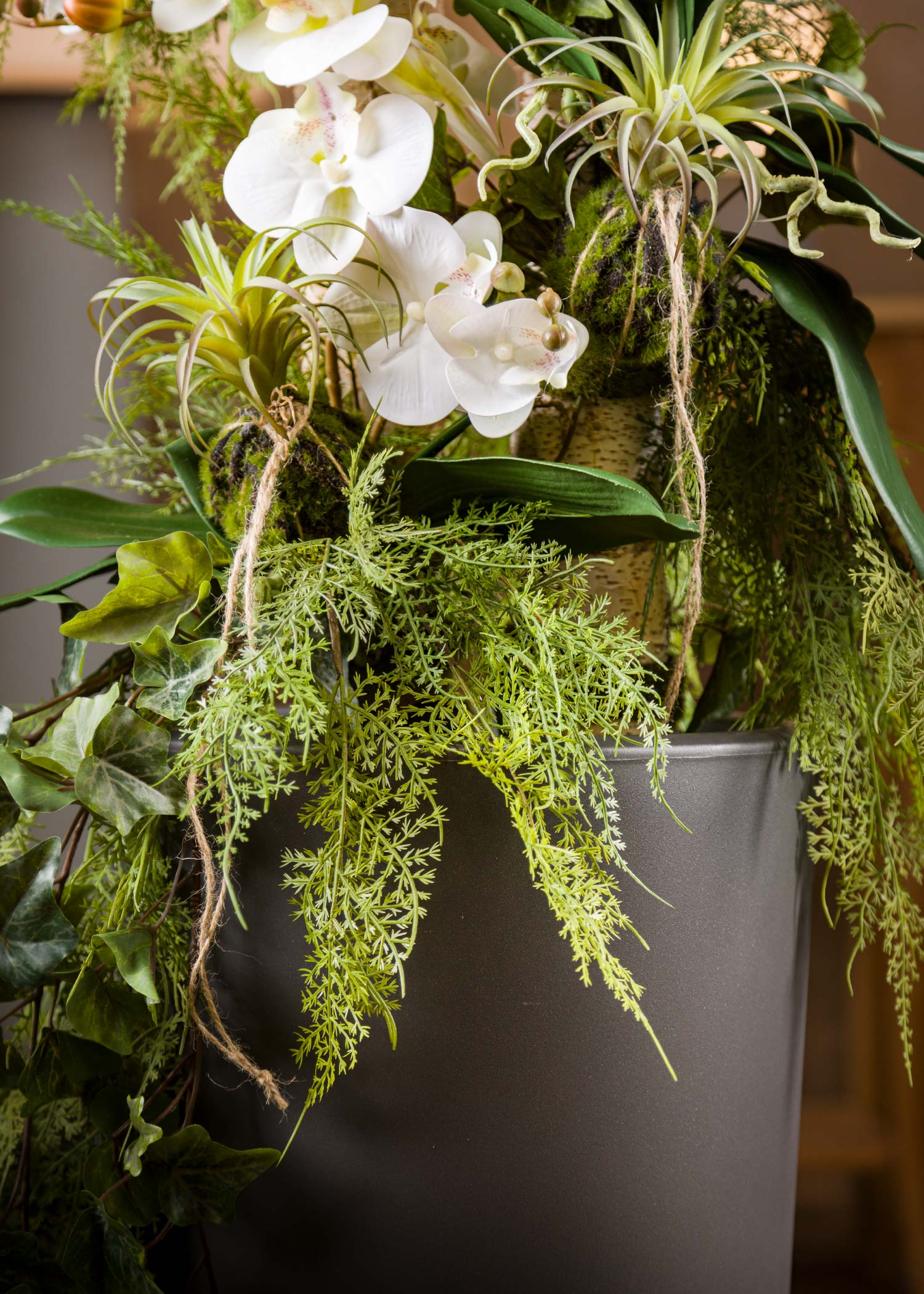 Immagina di introdurre un angolo di foresta tropicale nel tuo spazio interno. Le nostre composizioni con Orchidee bianche artificiali, sono come veri e propri giardini in miniatura, in grado di trasformare qualsiasi ambiente in un’oasi di serenità e freschezza. Questo tocco di verde e delicatezza può donare nuova vita alla tua casa o al tuo ufficio, conferendo un’atmosfera unica.