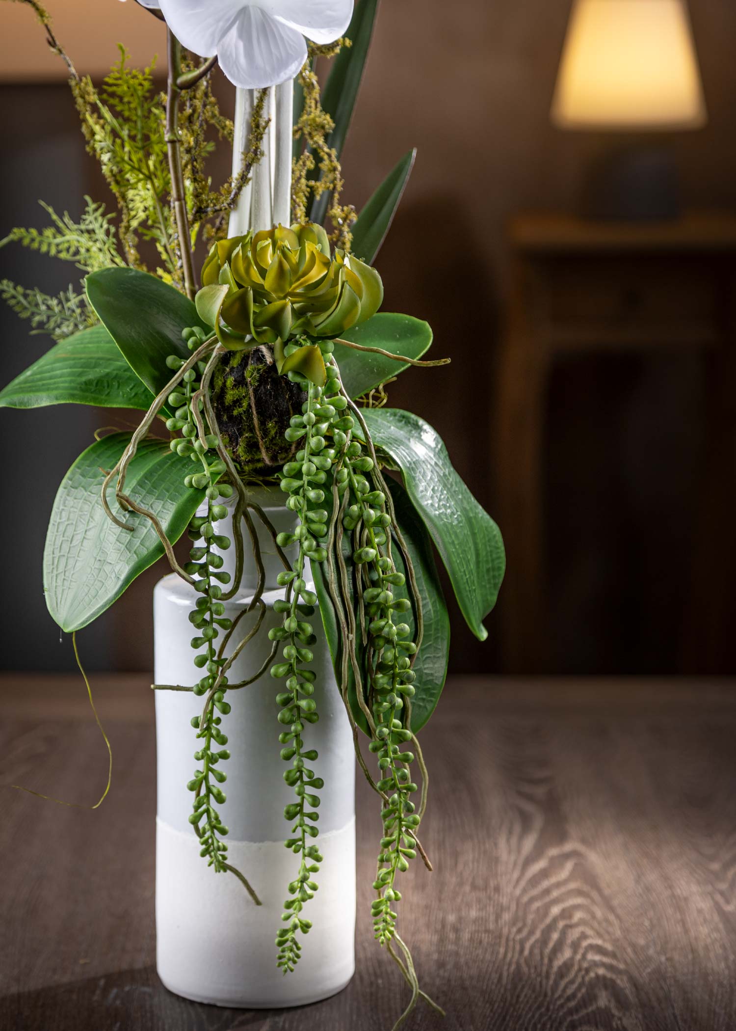 Queste dimensioni rendono questa composizione di Orchidee Artificiali Alta Qualità ideale per gli spazi ristretti. Grazie alla sua crescita in altezza, si adatta perfettamente a ambienti con poco spazio disponibile, come mensole o angoli ristretti. D’altro canto, la nostra composizione è pensata per donare eleganza e stile anche in spazi compatti, trasformando qualsiasi ambiente in un luogo di raffinata bellezza.