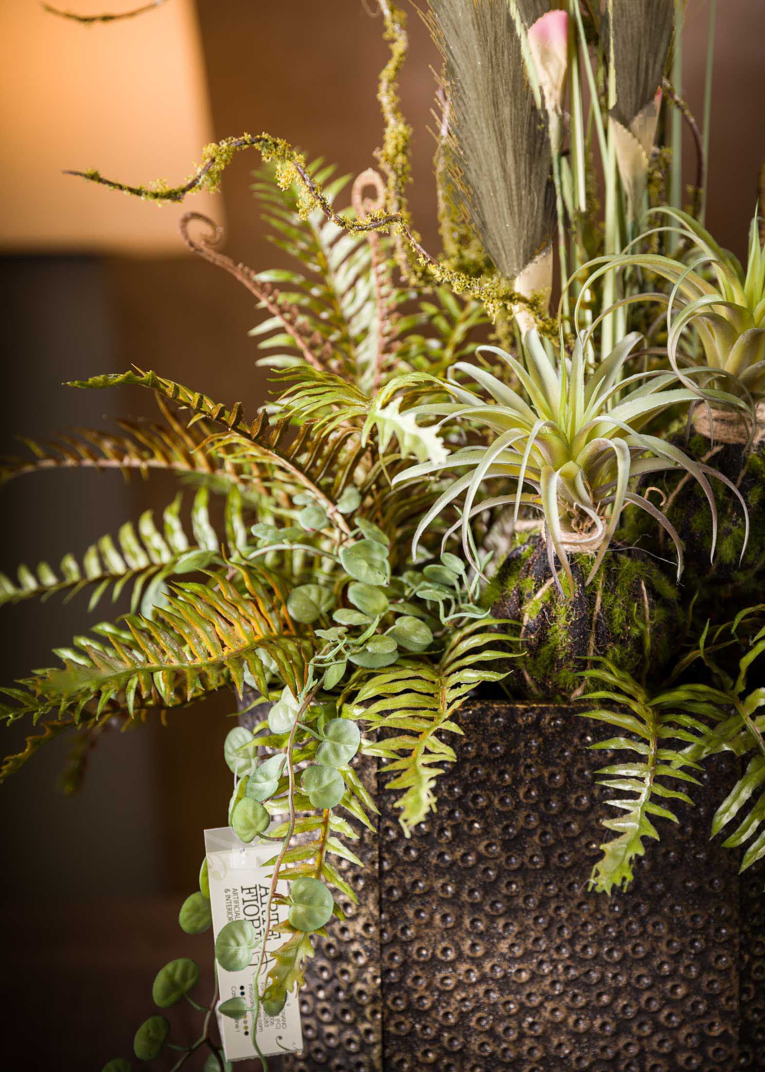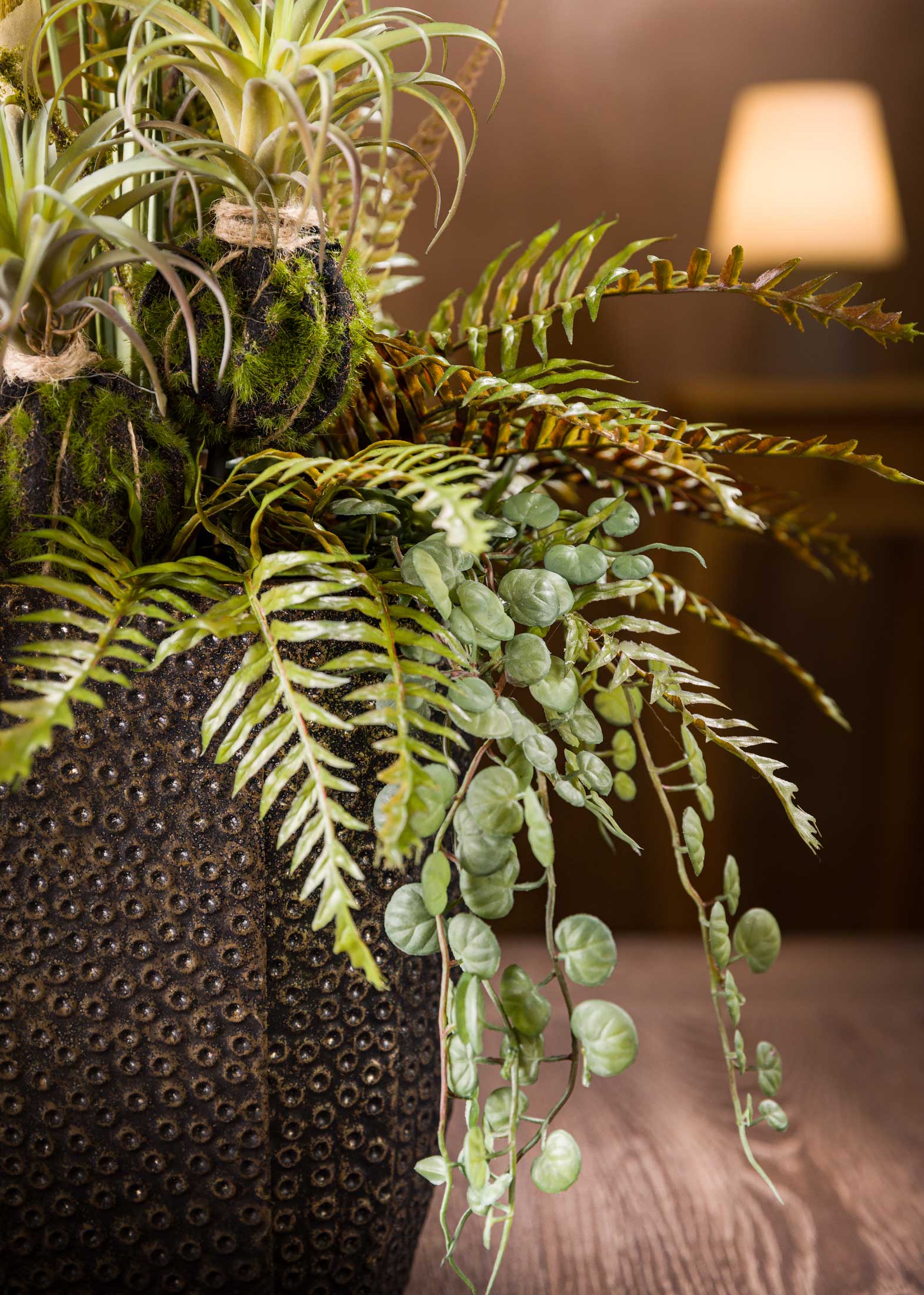 La pampas composizione è un’elegante creazione di fiori artificiali di alta qualità, sapientemente abbinati a foglie di felce e piante grasse. Il tutto è disposto in un vaso decorativo dal design moderno, che conferisce un tocco contemporaneo all’insieme.
