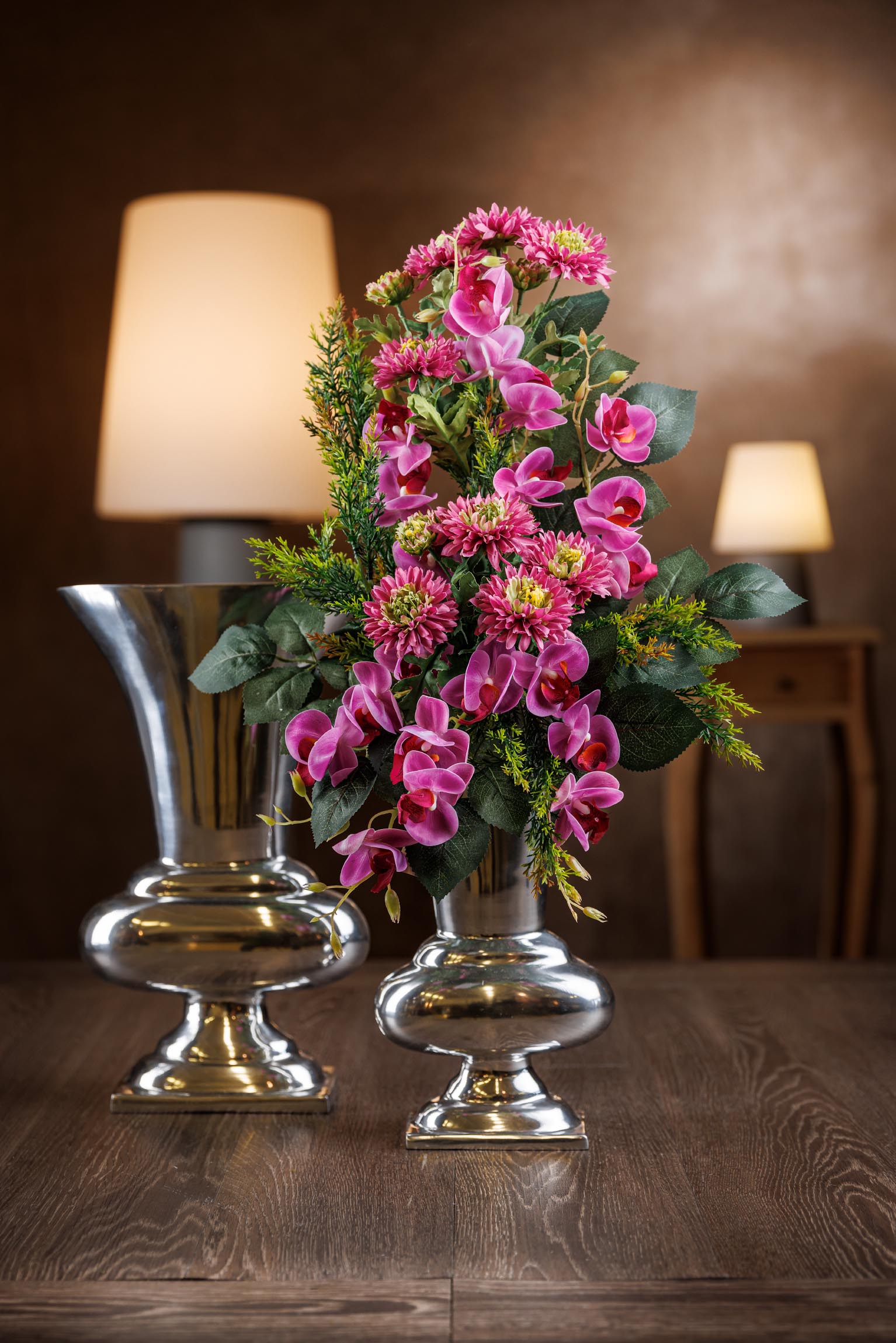 La composizione per cimitero con orchidee fuxia non necessita di acqua o di cure particolari. È importante posizionarla in un luogo riparato dal Sole.