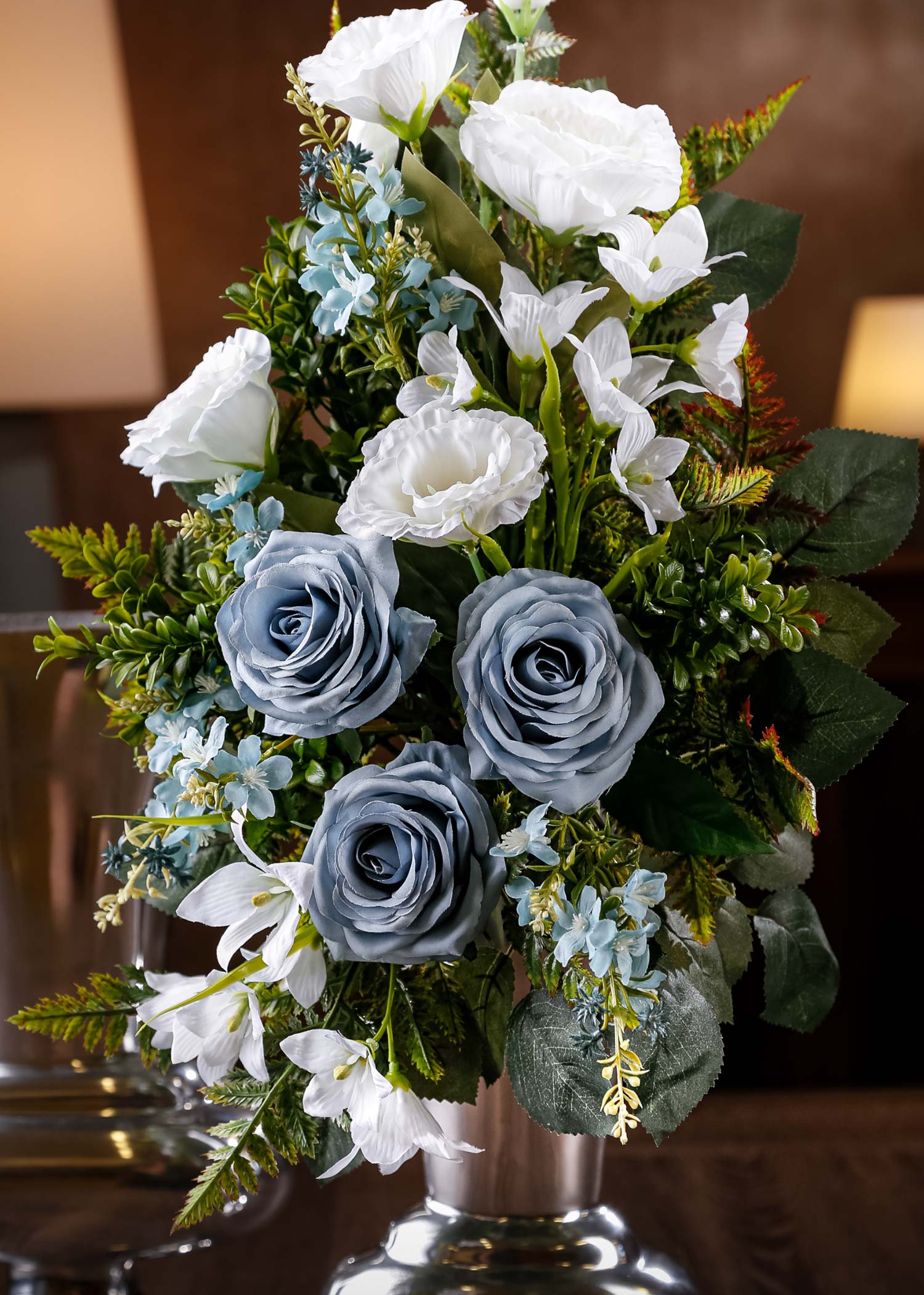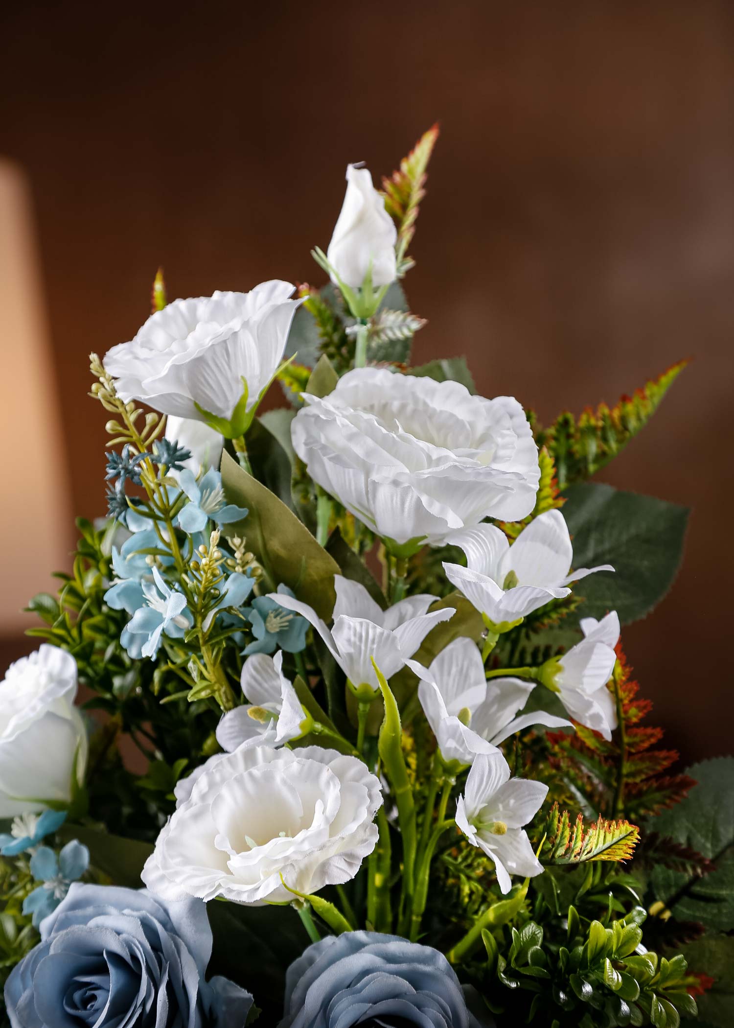 - Colori delicati, tra cui il bianco e l’Azzuro, che donano un tocco di raffinatezza di questi Fiori finti per cimitero.