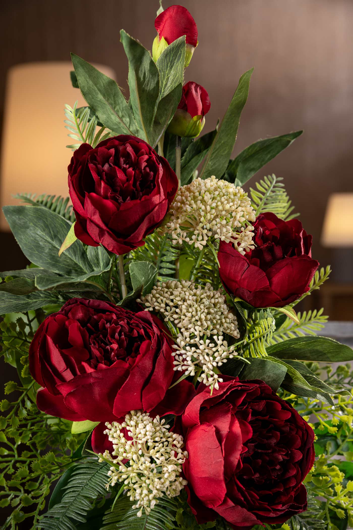 Arte Fiore, leader nel settore italiano, presenta il suo esclusivo mazzo di fiori artificiali di alta qualità e design, pensato appositamente per loculi e tombe nei cimiteri. Questo magnifico mazzo, arricchito da peonie rosse e foglie verdi, offre un aspetto incredibilmente realistico, capace di trasmettere un senso di pace e serenità.
