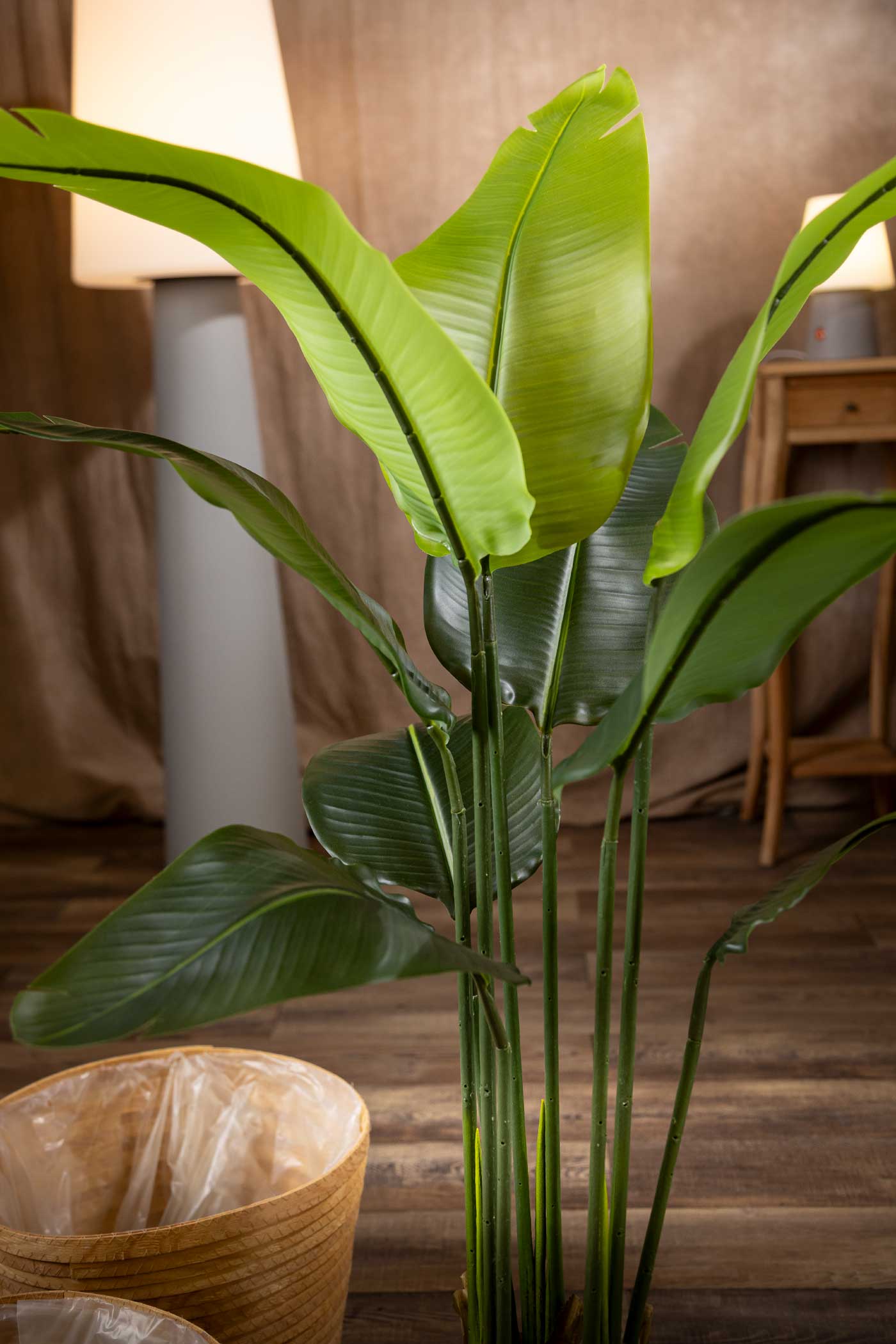 La nostra pianta artificiale Strelitzia è la soluzione perfetta per te. Infatti, realizzata con i migliori materiali e le migliori tecniche di produzione, questa pianta artificiale è di altissima qualità e resistente alle intemperie. Inoltre, le grandi foglie verdi, lucide e appuntite simulano l’aspetto di quelle vere, con venature più scure che aumentano il realismo della pianta. In aggiunta, il fusto robusto si erge diritto, con foglie che partono dalla base fino alla cima, creando un effetto naturale e denso.