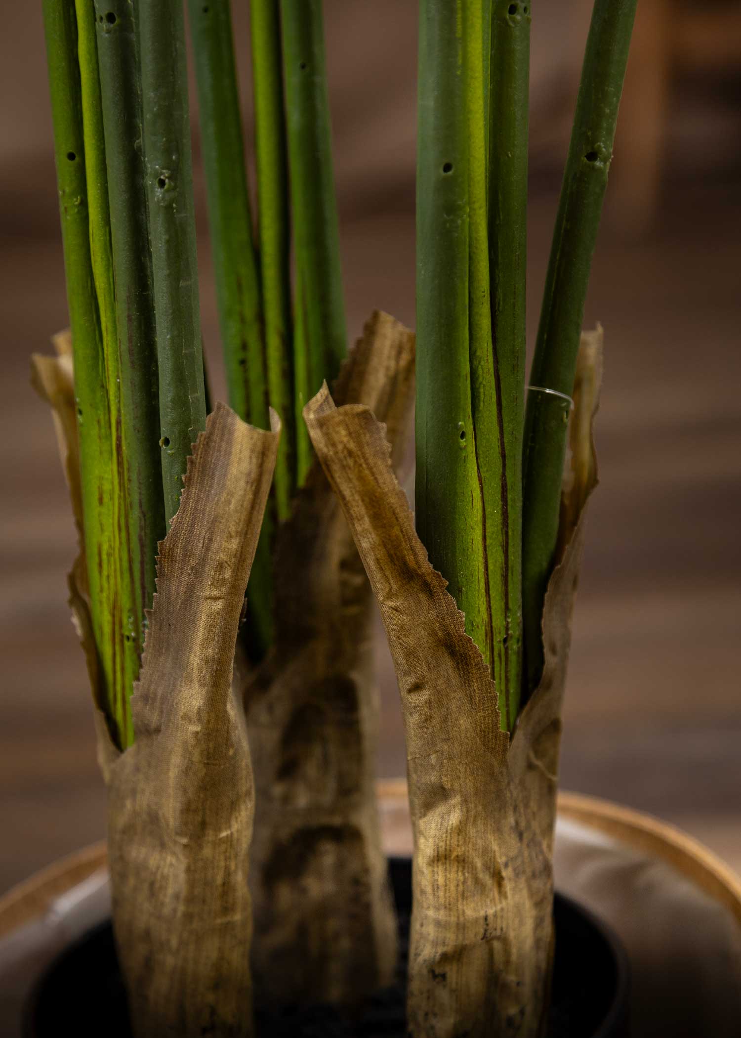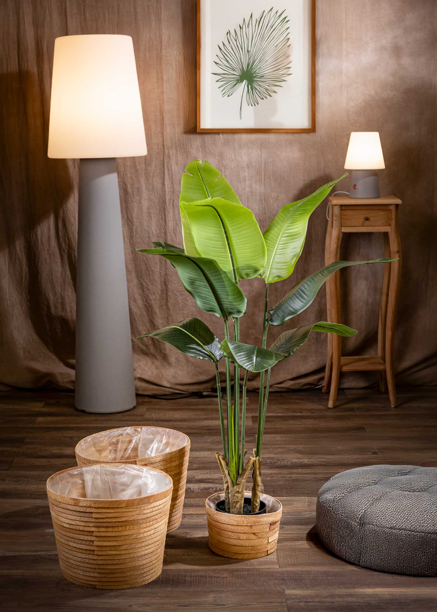 La pianta artificiale Strelitzia è alta 160 cm oppure 110 se disponibile, e si inserisce perfettamente in qualsiasi ambiente, donando un tocco di eleganza e di stile. Ad esempio, posizionala in un vaso nero semplice per esaltare la bellezza delle sue foglie, oppure inseriscila in un coprivaso di diverse misure per adattarla al tuo arredamento.